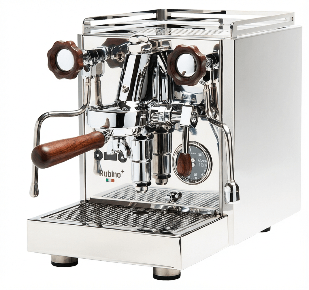 Quick Mill Rubino+ is een professionele espressomachine voor thuis die klassieke Italiaanse ambachtstraditie combineert met moderne functionaliteit. Met zijn E61-zetsgroep en warmtewisselaarsysteem levert de Rubino+ stabiele temperaturen en uitzonderlijke espresso, kop na kop.