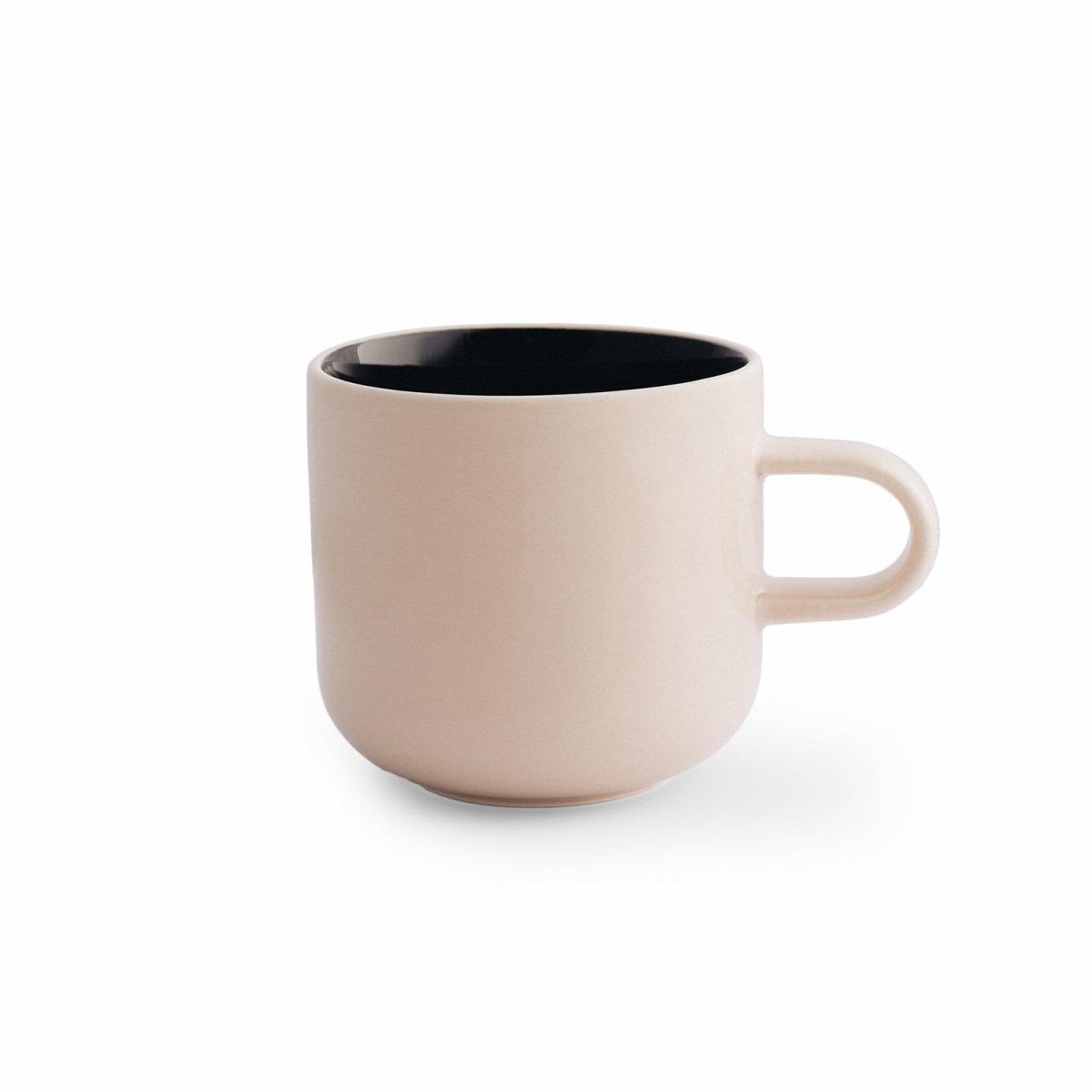 Deze editie combineert de bekende vorm van de Bobby-mok met een speelse contrastglazuur in de tinten cameo roze, macadamia en zwart. Het resultaat zijn mokken die opvallen – maar toch opgaan – even vanzelfsprekend op de koffietafel als in de vitrinekast.