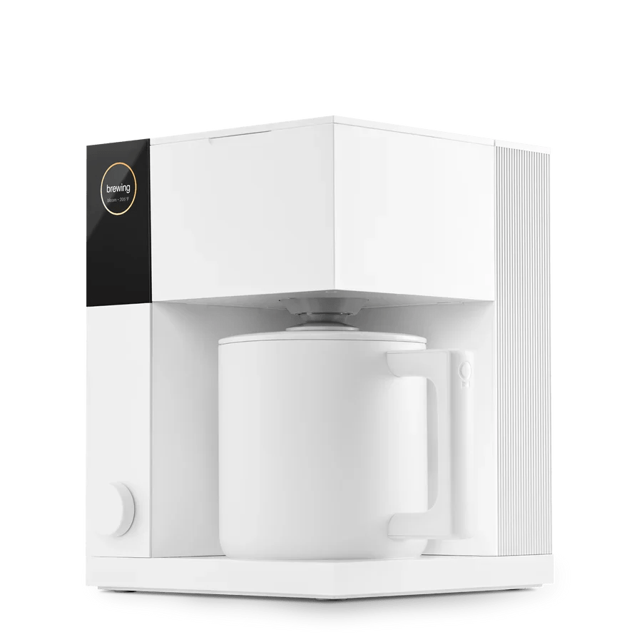 De Fellow Aiden Brewer in het wit ijs pour-over Koffiezetten – geperfectioneerd en geautomatiseerd. Ontworpen voor wie van goede koffie houdt, maar geen zin heeft in de rompslomp van handmatig koffiezetten, geeft Aiden je volledige controle over de belangrijkste variabelen: temperatuur, timing, bloei en verzadiging.