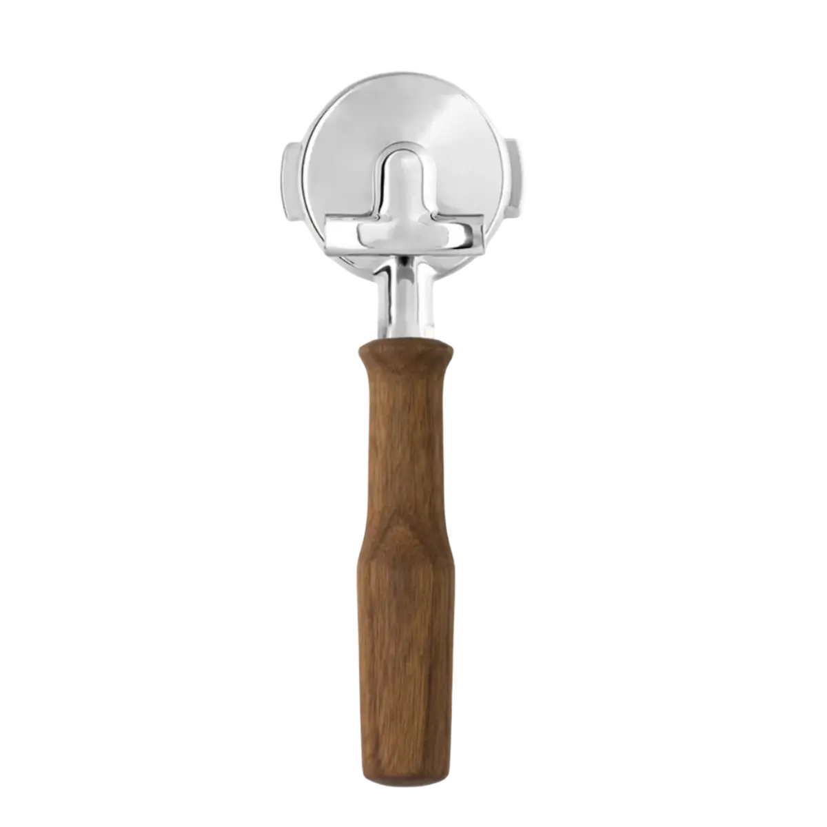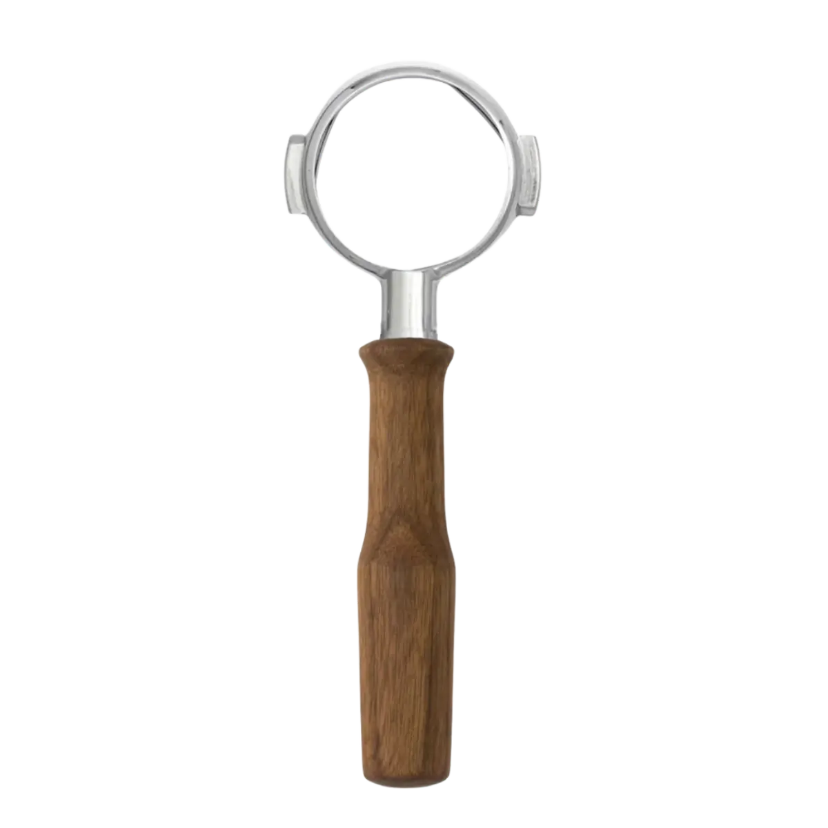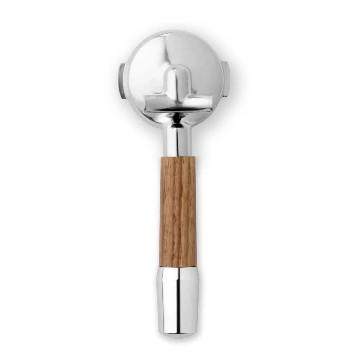 BAARK sage portafilter 58 mm is voor wie zijn espressomachine een doordachter uiterlijk wil geven en tegelijkertijd elke dag een hoogwaardig gereedschap in handen wil hebben. Dit is een espresso portafilter met houten handvat die de precisie van metaal combineert met de warme uitstraling van hout. Voor wie op zoek is naar een sage portafilter voor de Oracle-serie is dit een elegante keuze, vooral als je je machine wilt matchen met een meer designbewuste koffiestation. De afbeelding toont een uitvoering met lichte houtafwerking en metalen kop, wat een strak en professioneel indruk geeft.