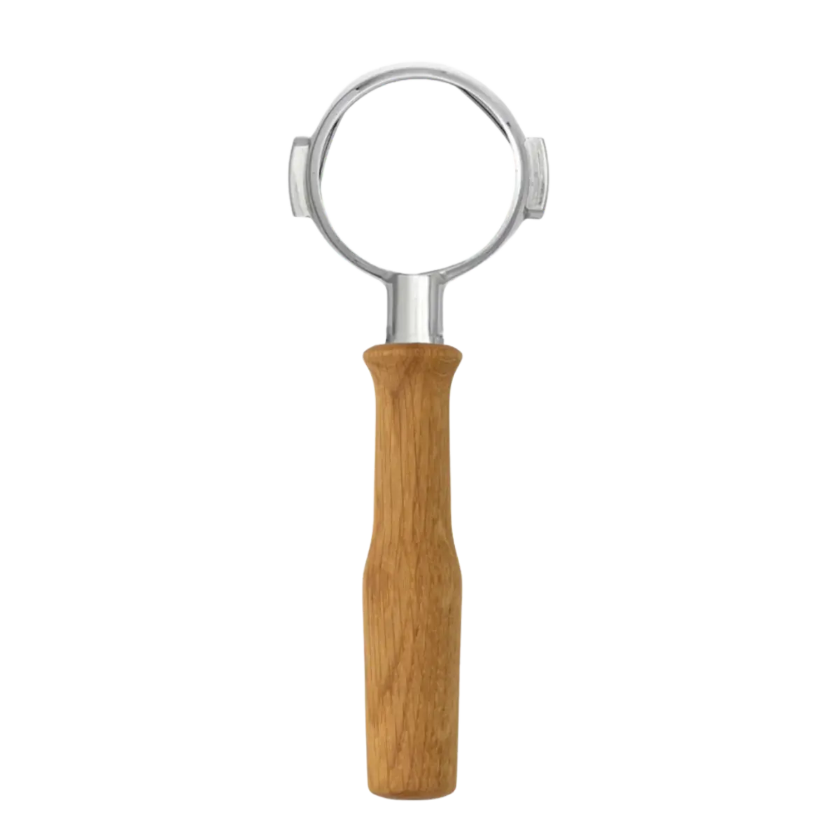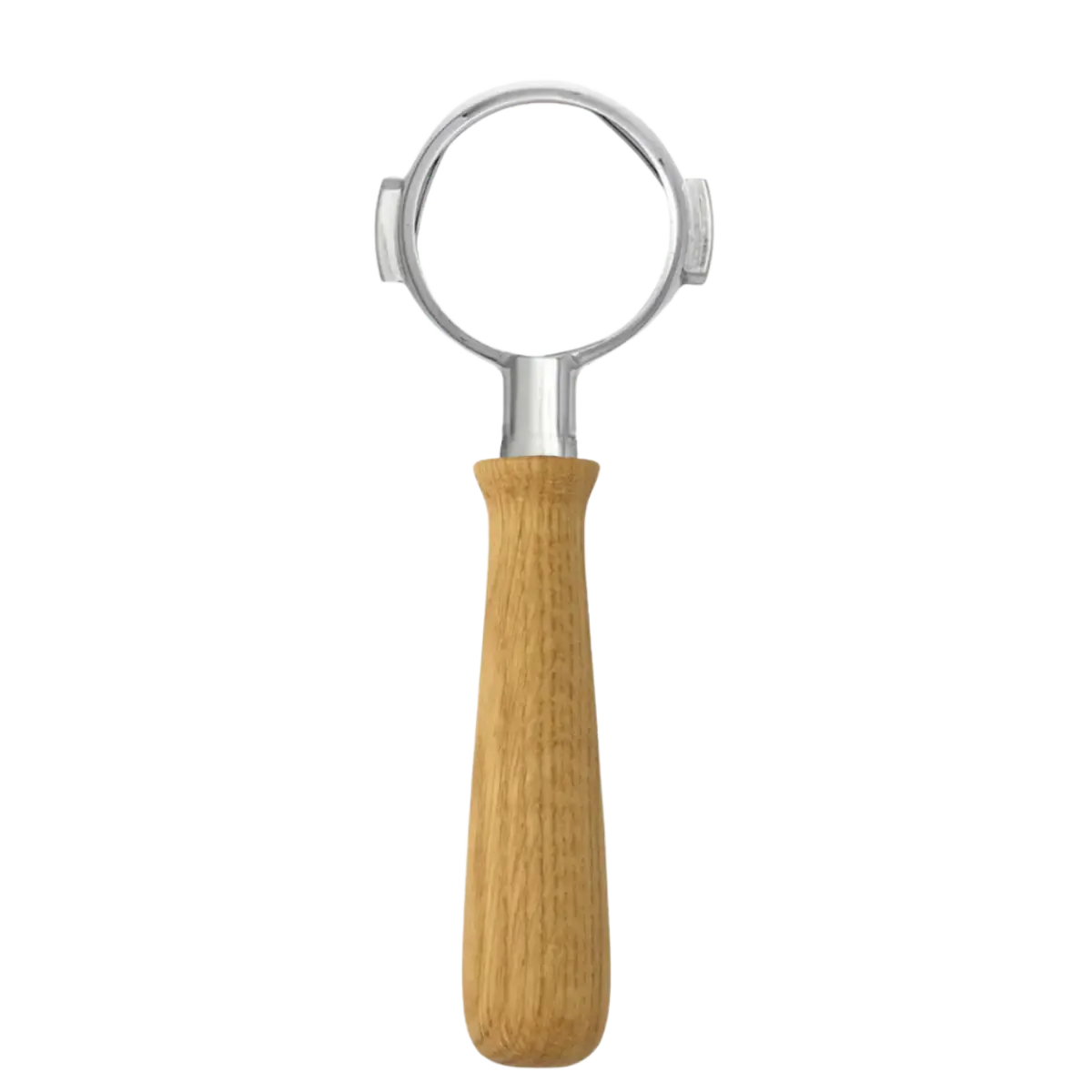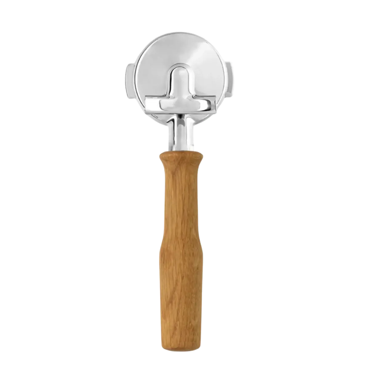 BAARK sage portafilter 58 mm is voor wie zijn espressomachine een doordachter uiterlijk wil geven en tegelijkertijd elke dag een hoogwaardig gereedschap in handen wil hebben. Dit is een espresso portafilter met houten handvat die de precisie van metaal combineert met de warme uitstraling van hout. Voor wie op zoek is naar een sage portafilter voor de Oracle-serie is dit een elegante keuze, vooral als je je machine wilt matchen met een meer designbewuste koffiestation. De afbeelding toont een uitvoering met lichte houtafwerking en metalen kop, wat een strak en professioneel indruk geeft.