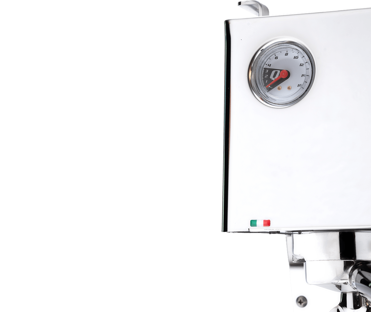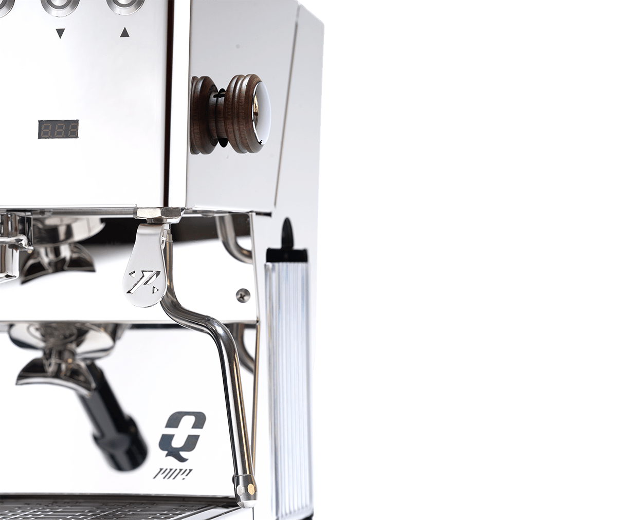Materiaal: Volledig roestvrij staal; verkrijgbaar in staal of mat zwart; Quick Mill zetgroep met O-ring; anti-verbrandingsstoompijp