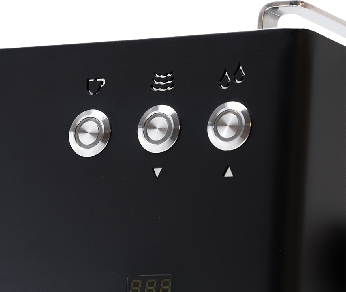 Bediening: PID; display (temp, shottimer, instellingen); programmeerbare pre-infusie, eco en standby; pompdrukmeter 0–16 bar; profiling valve; vandalismebestendige verlichte knoppen; aan/uit-schakelaar