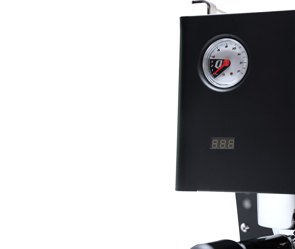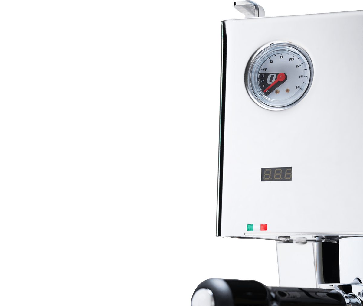Met drukmeters voor zowel pompdruk als boilerdruk zie je precies hoe de machine werkt en hoe je instellingen de extractie beïnvloeden.