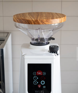 Upgrade uw koffiemolen met een stijlvolle maalkap van Wiedemann Gemaakt. Handgemaakt van massief hout en ontworpen om te passen Eureka Atom De verpakking van 300 g is perfect – zowel functioneel als esthetisch.